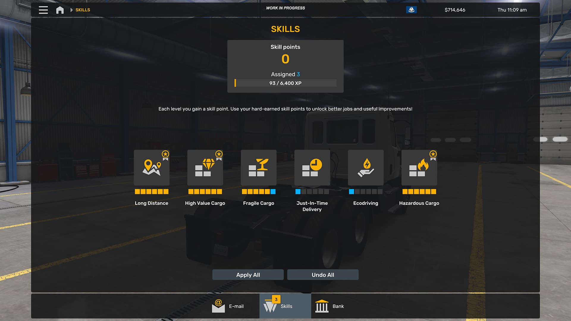 Another change with American Truck Simulator’s 1.59 Open Beta is a redesigned Skills Screen. Users can now view their current skill level and the next step in the progression pipeline, while also viewing the other ranks in each skill.