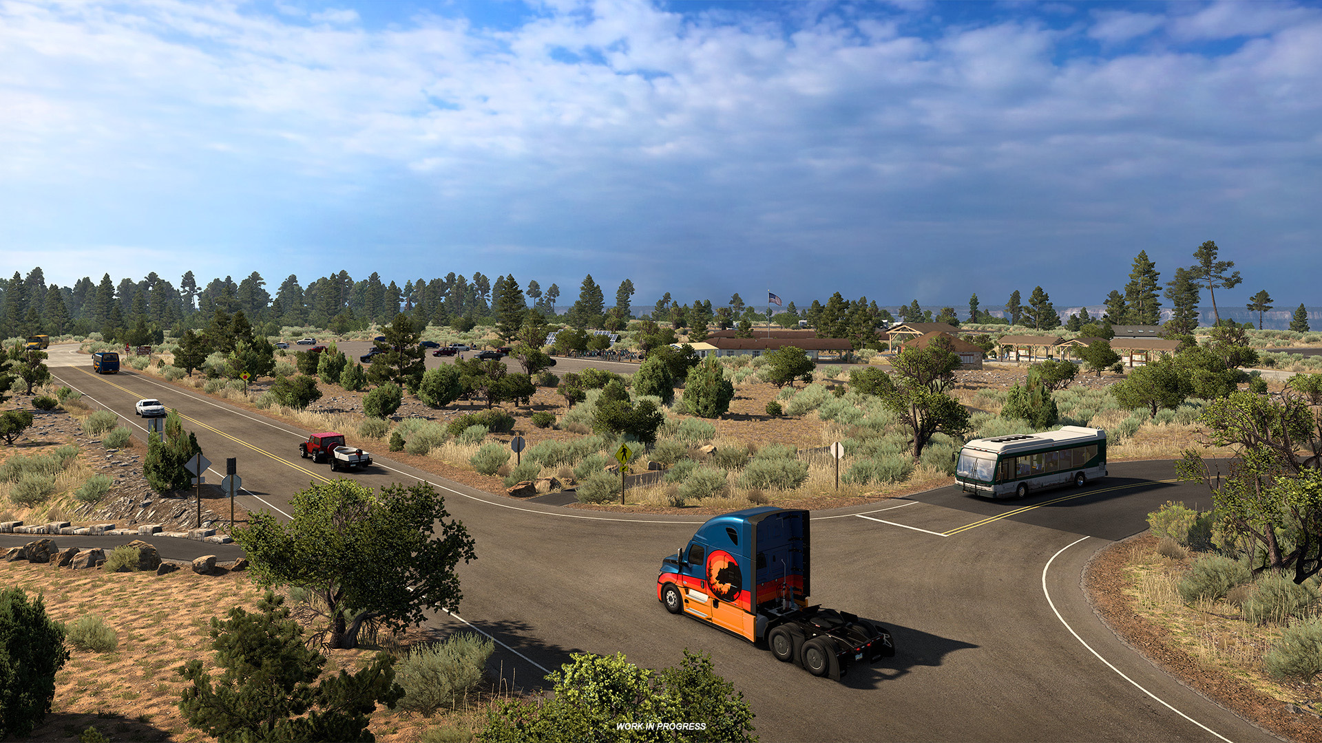 We get to see Grand Canyon Village with the addition of the settlement of Tusayan, alongside multiple lookouts over the Canyon. The official entrance gate to the National Park has also been included.