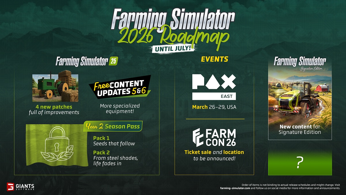 Giants Software already has big plans for Farming Simulator 25 in 2026, revealing another look at the roadmap for the next year of content, specifically for the first two quarters.