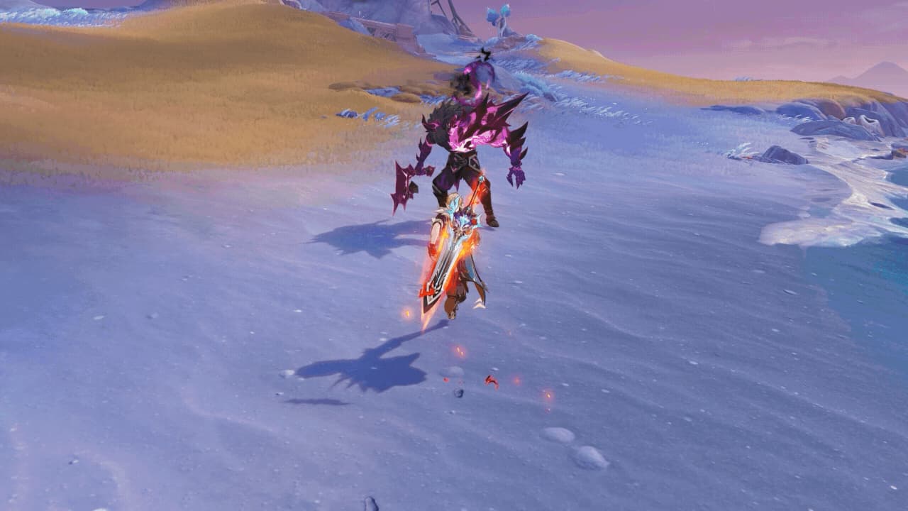 In combat, Varka is a five-star Anemo character who dual-wields two claymores, focusing on enhancing his Normal and Charged Attacks. One claymore always deals Anemo damage, while the other deals damage based on his teammates’ elements (Pryo, Hydro, Electro, or Cryo). He also has a Hexerei buff, and players can claim a weapon skin for both of his weapons for free after defeating a Wolf Spirit fragment.