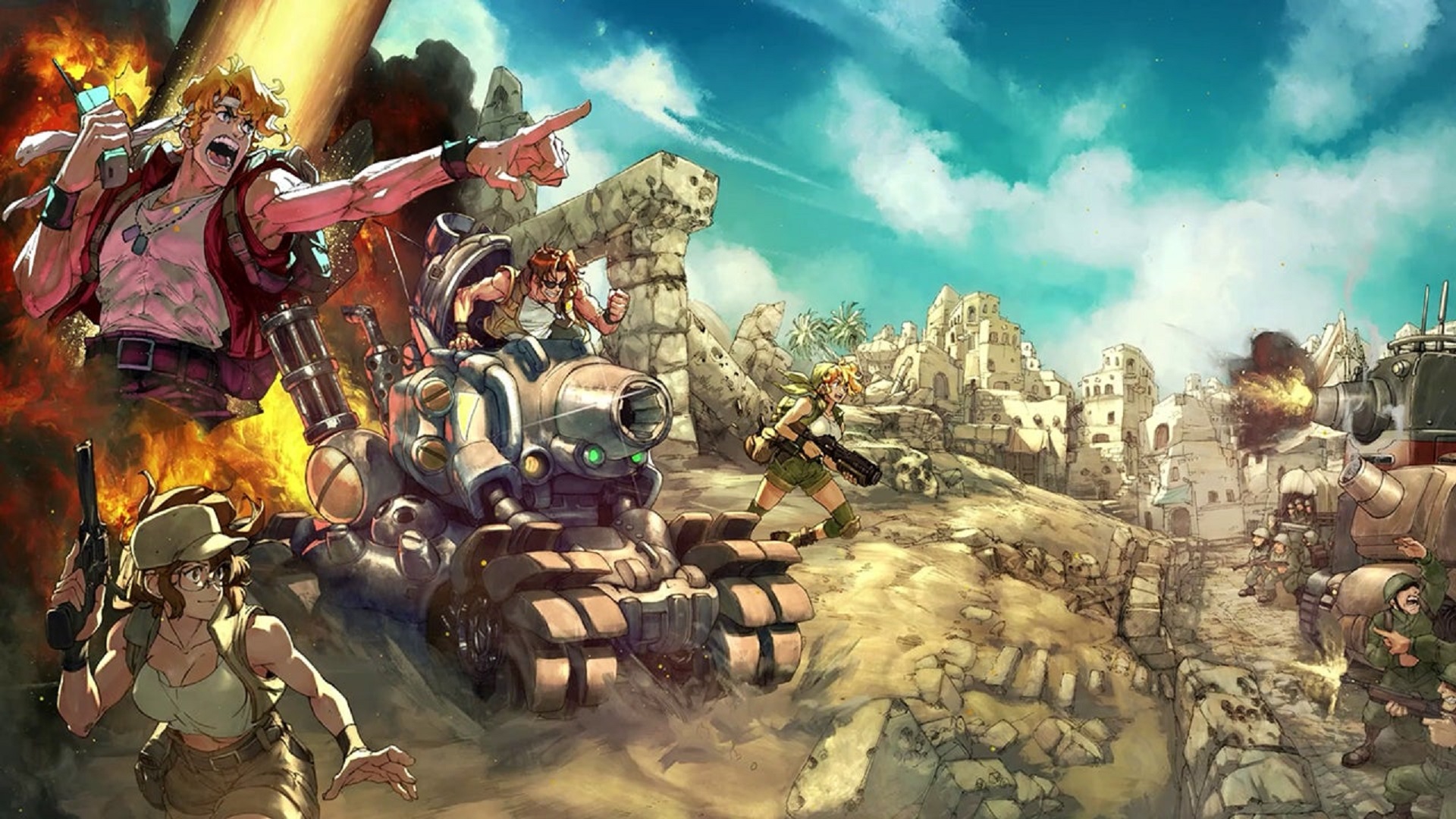 As you progress, you can unlock and improve your characters via skill trees, perks, and a super attack-fueling adrenaline system. Use all of these to traverse the highly replayable battlefields and defeat the signature villains you’ve come to know and love from the Metal Slug series over the years.