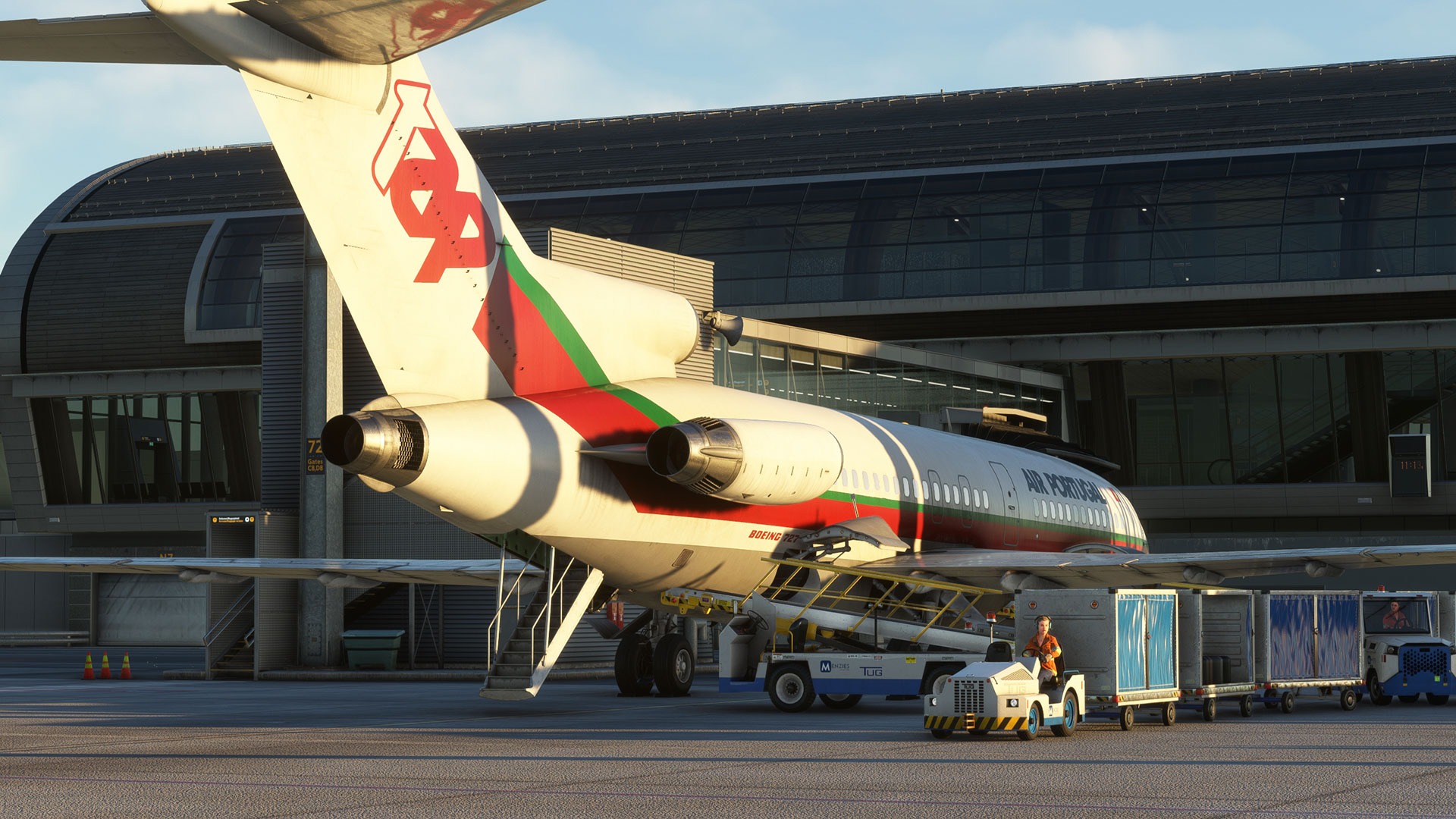 • Animated ground services, including boarding and GPU connection