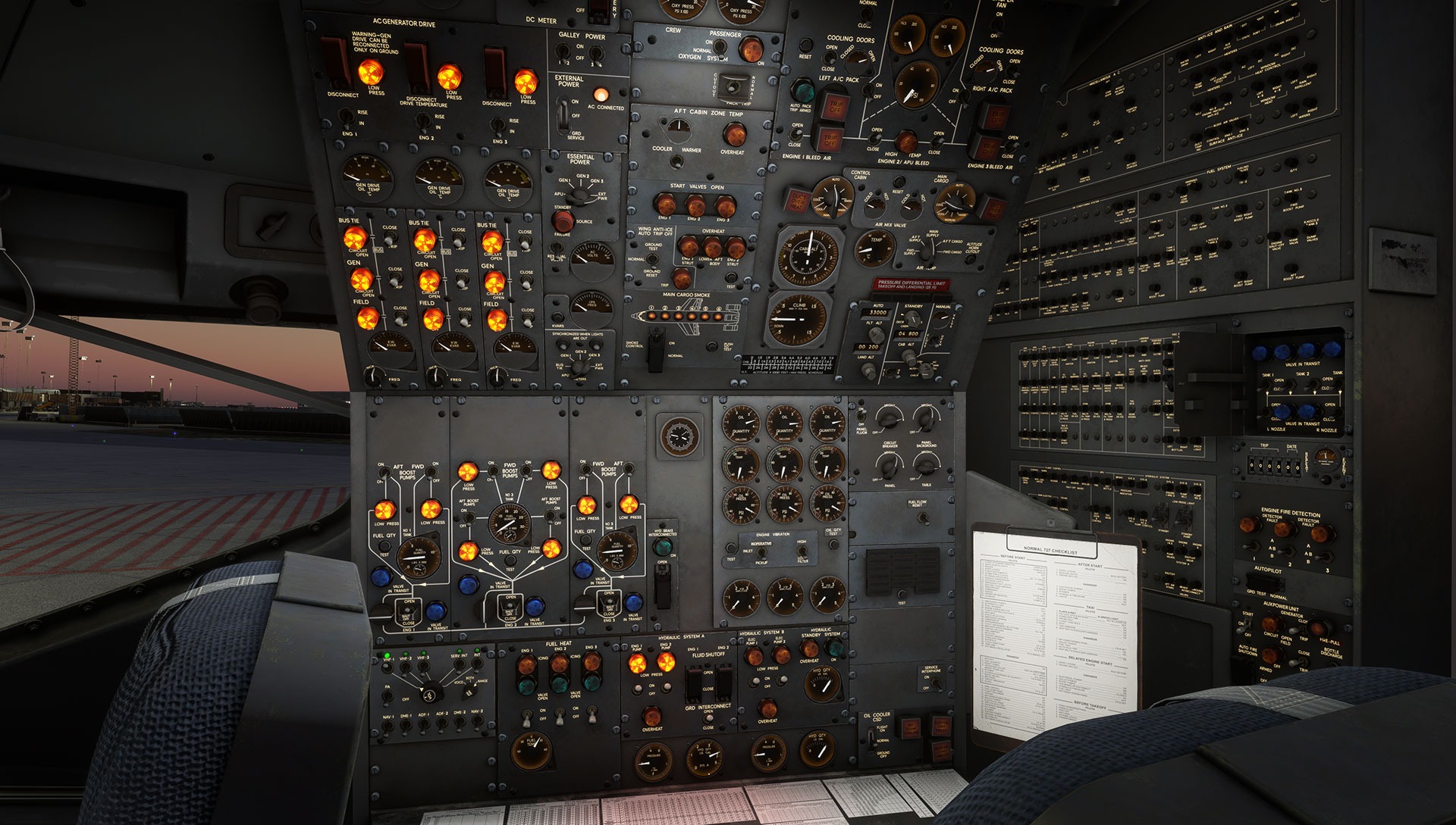 • Cockpit adapted to the 727-100 specifications and layout