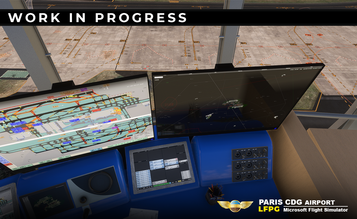 “Work continues on LFPG. We are keeping our heads down. This month, work on the ground design has progressed significantly, particularly on Terminal 2. The rest of the ground is almost complete. Terminal 1 and the cargo areas remain, which should not take too long. We have also made good progress on the AFCAD. Hundreds of secondary buildings are gradually being added, including our new parallax library for windows. The design of Terminal 2 is progressing well. It represents the most important and technical part, and the fact that we have recent 4K videos showing a complete tour of each part encourages us to focus on every detail.”