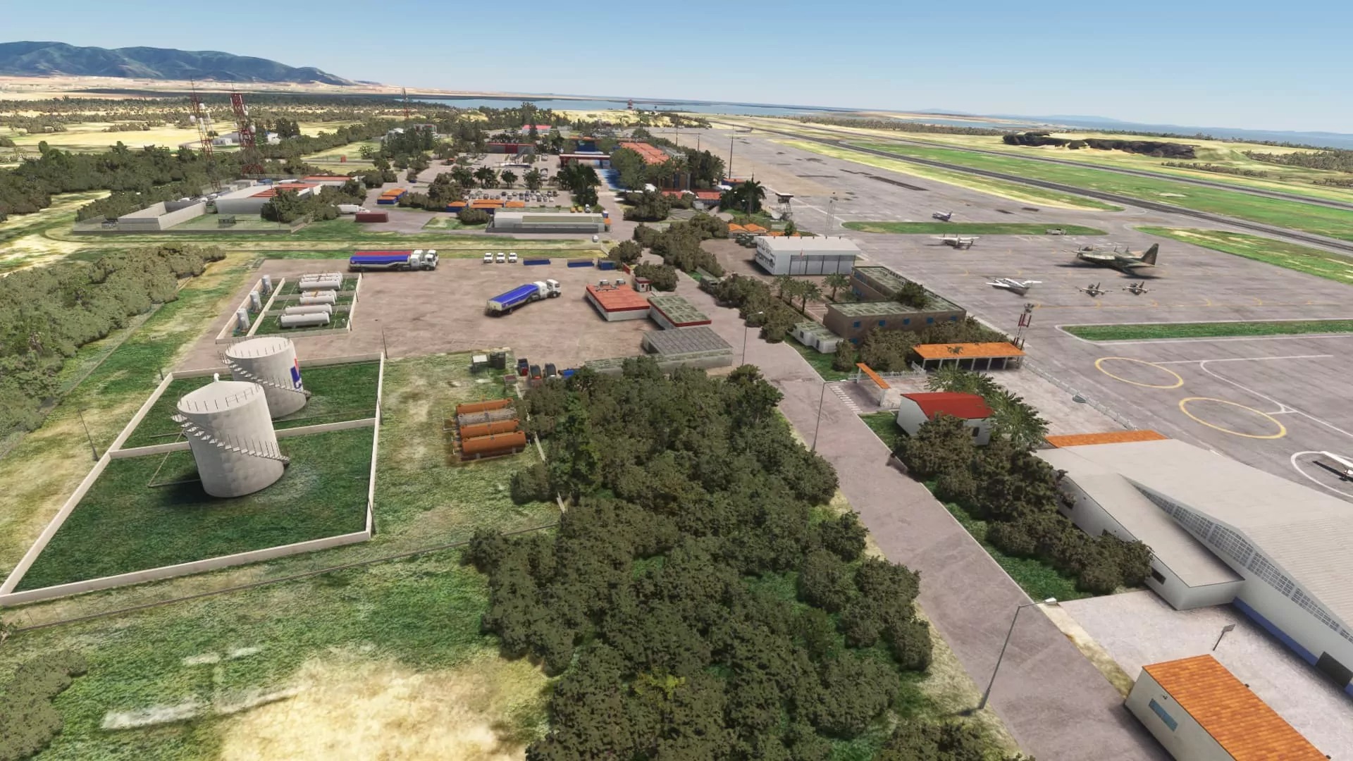 - Detailed terminal interiors in selected areas, fully modeled control towers, maintenance facilities, and hangars, all designed with performance efficiency in mind.