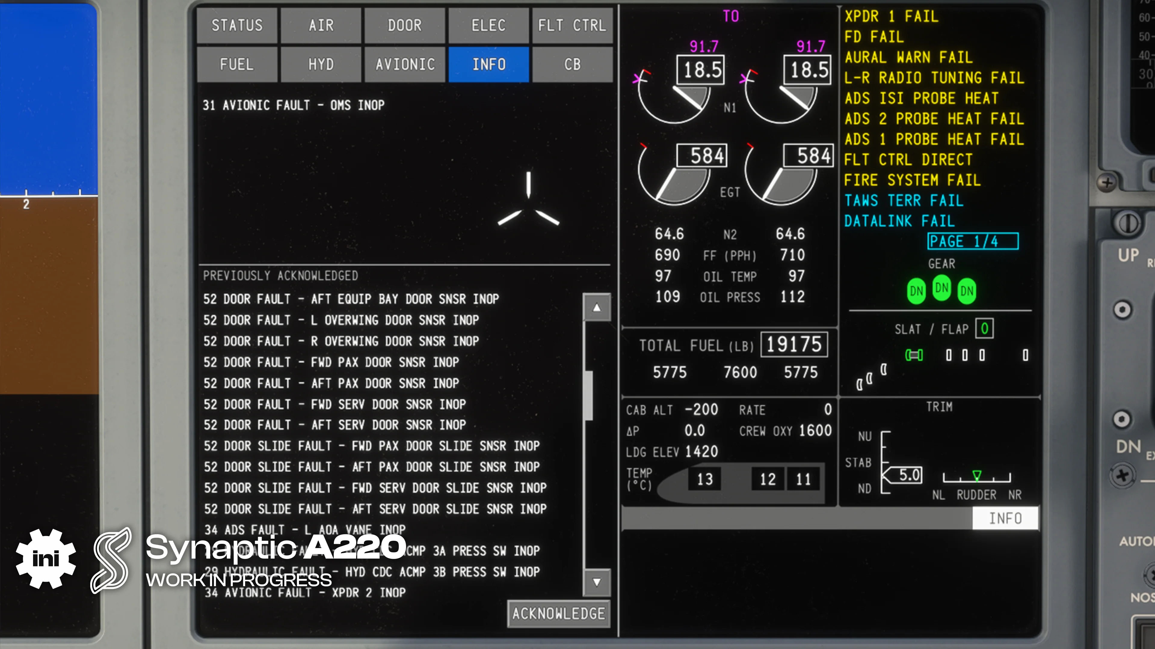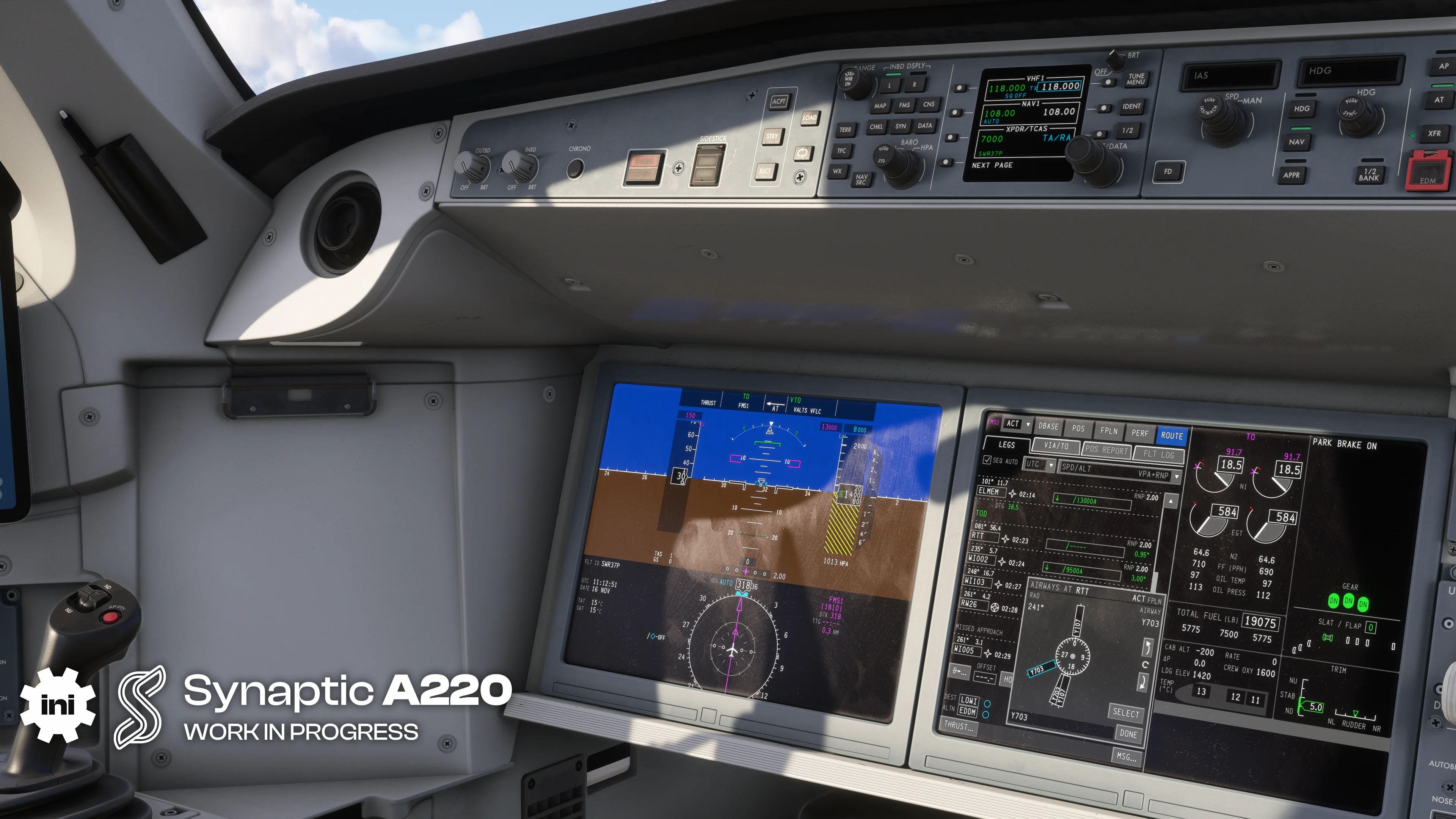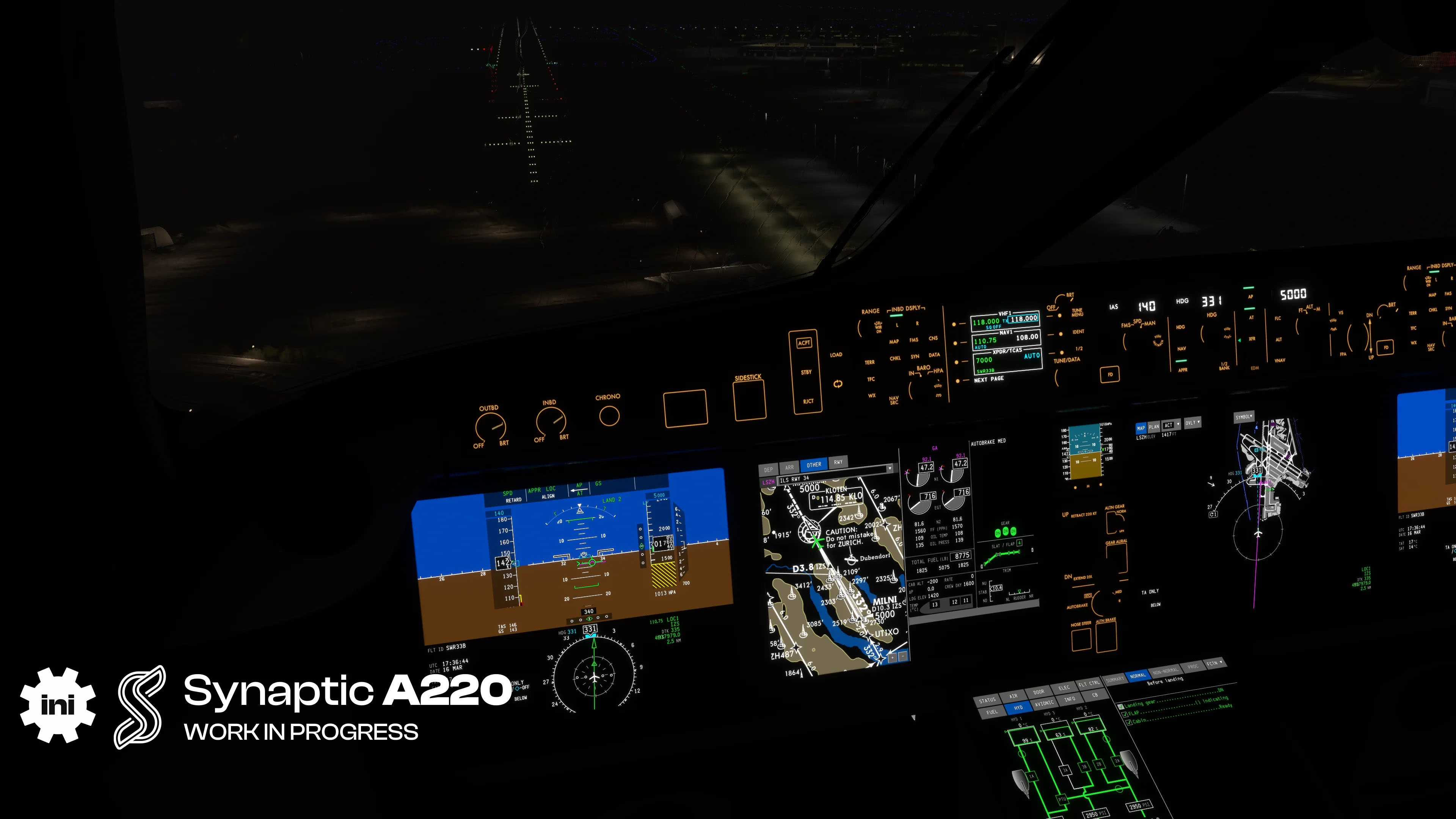 Moving on to the Airbus A220 by Synaptic Simulations, which will still be published by iniBuilds, the aircraft is “steadily progressing towards release-candidate readiness.”