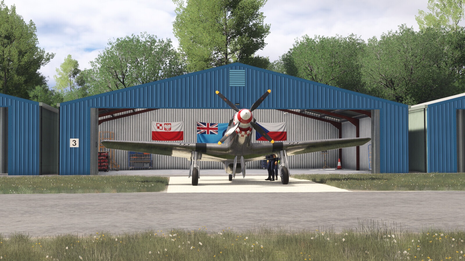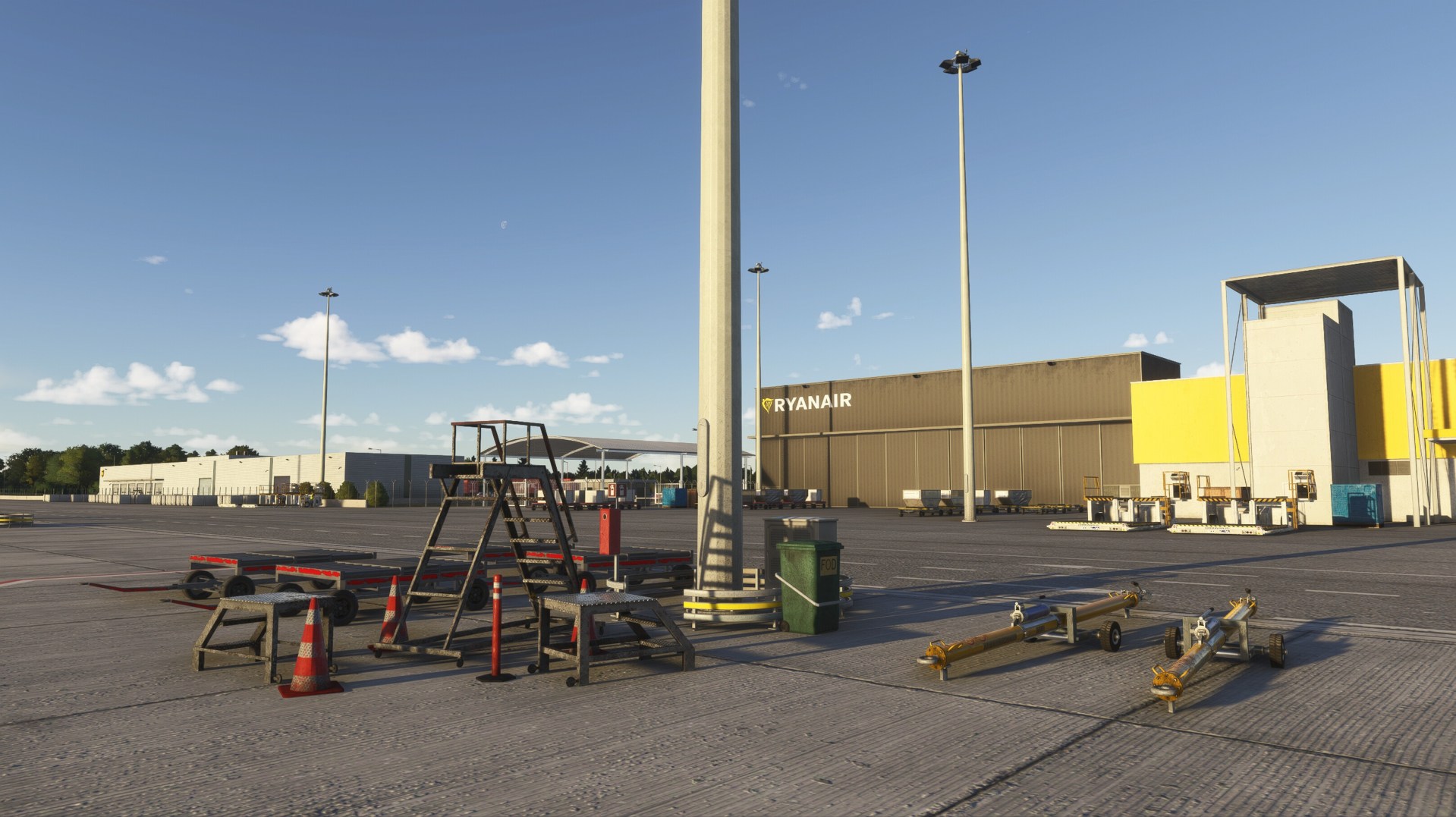 - Detailed control room and hangar interiors with animated hangar doors that close at night (open manually with Taxi Lights)