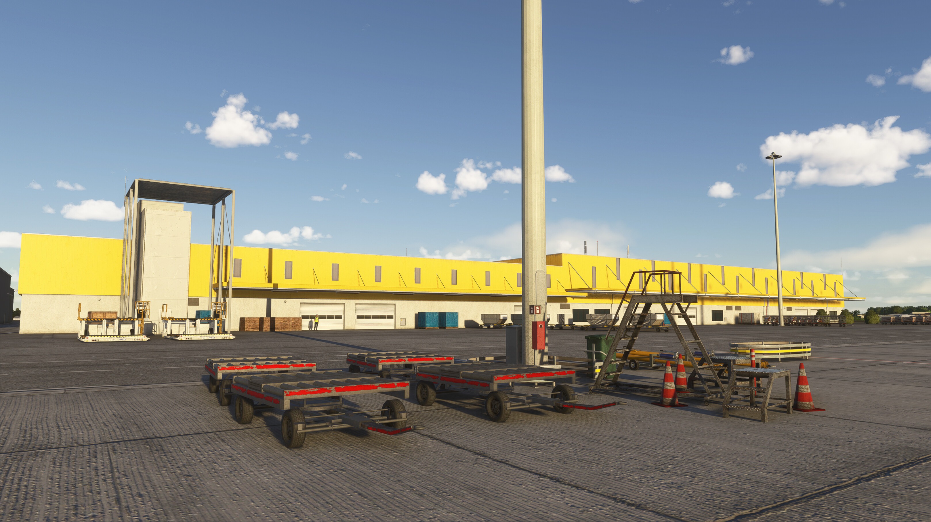 - Detailed control room and hangar interiors with animated hangar doors that close at night (open manually with Taxi Lights)