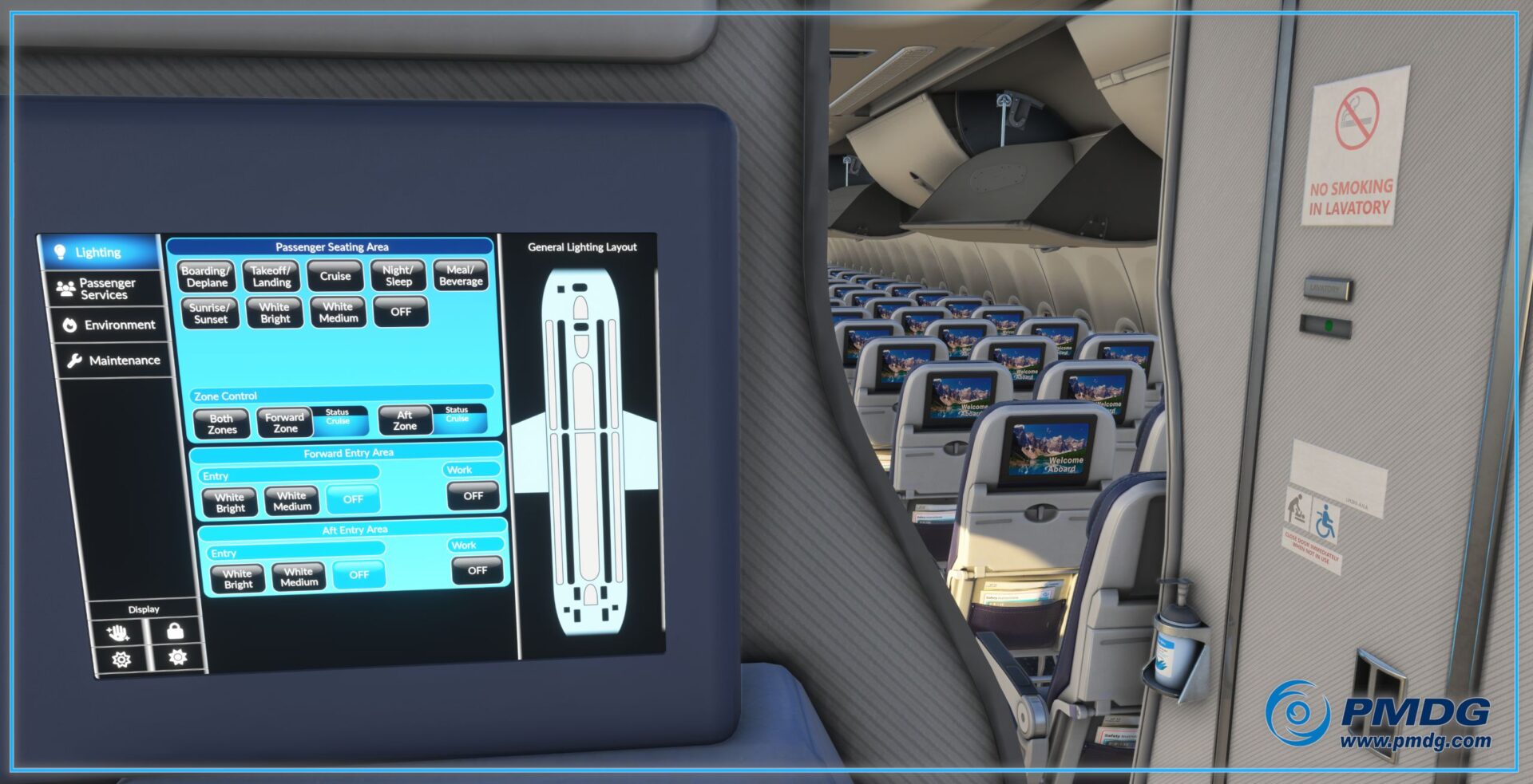 Funnily, we hear that the hand-sanitizer dispensers are animated, while the control screen in the galley is functional.