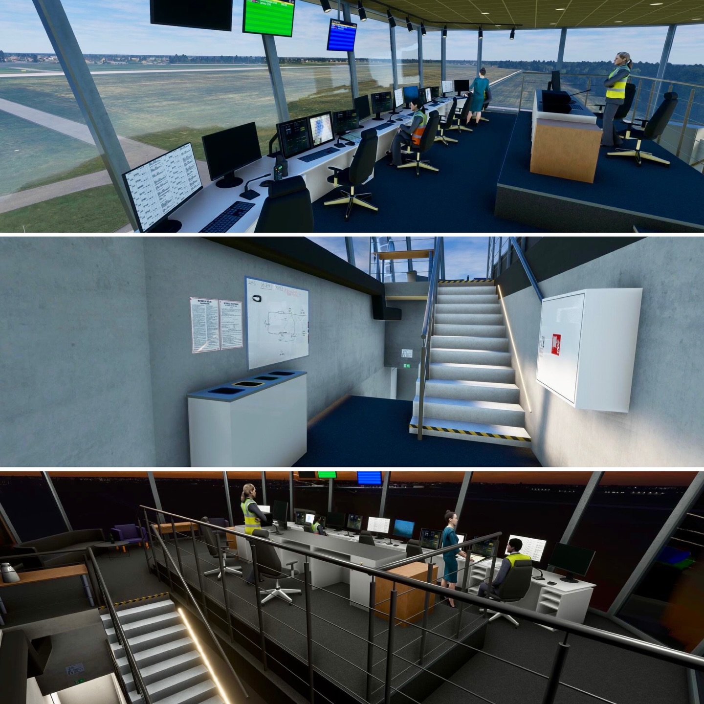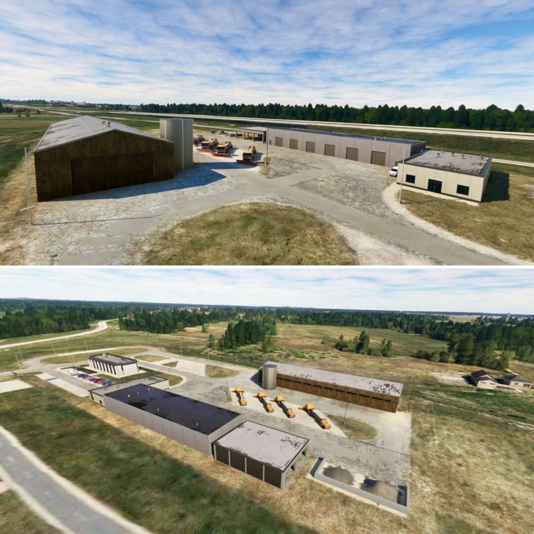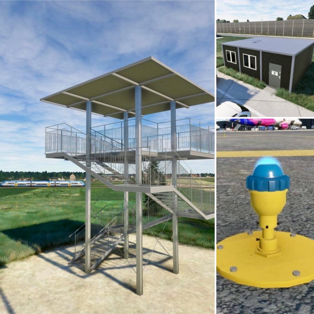 “This week was all about EPRA Radom and closing the remaining gaps. The ATC tower interior is now fully modeled, the terminal received another round of refinements and equipment updates, and LODs are in place across the airport. Navigation aids were tested and tuned, with ILS and reference points carefully adjusted, and taxiway lights were replaced with custom models. The Radom area also expanded beyond the fence line, with the cathedral completed, new service buildings added, and supporting infrastructure around the nearby highway coming together.