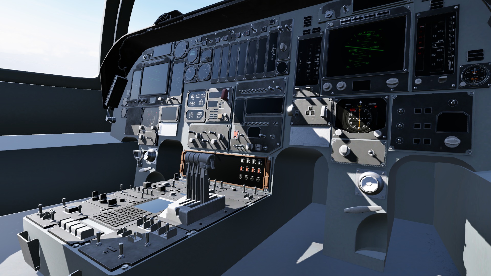 “The overhead panel is now complete. We’ve been experimenting with several texture variations directly inside the simulator. The avionics are taking their first steps and beginning to come to life.”