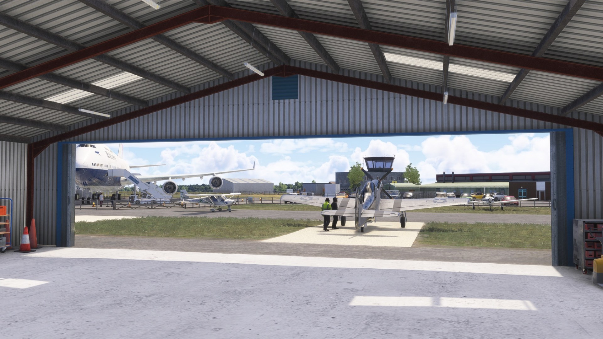 - 4 hangar interior with animated and controllable hangar doors