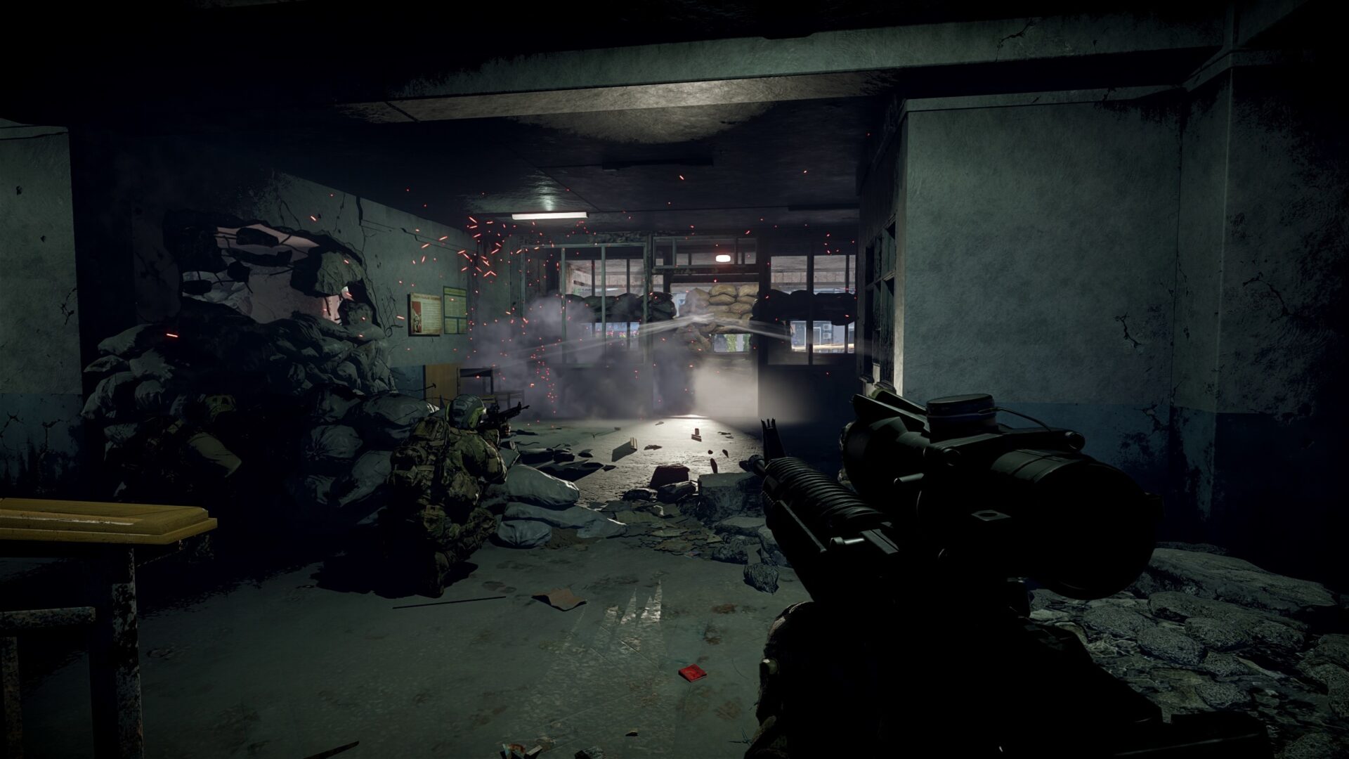 Granitograd features various passageways and countless opportunities for cover, and infantry units will be able to operate within buildings on multiple levels and climb onto rooftops. Squads Infantry squads will be armed with a variety of small arms, all modified with optical or red dot sights, underbarrel grenade launchers and laser sights, tactical grips, and bipods.