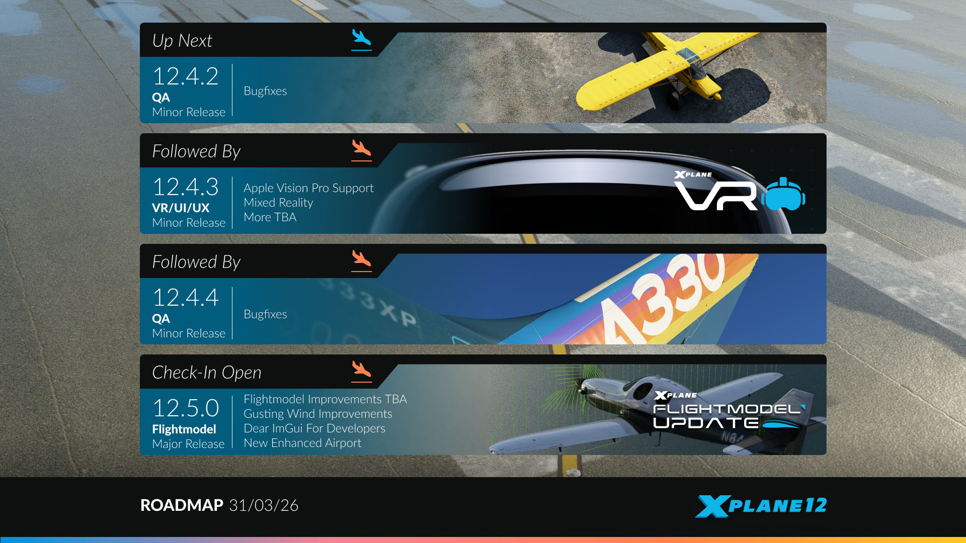 Following the release of version 12.4.1, Laminar Research announced the content of the next four updates, including three minor ones and a major one.